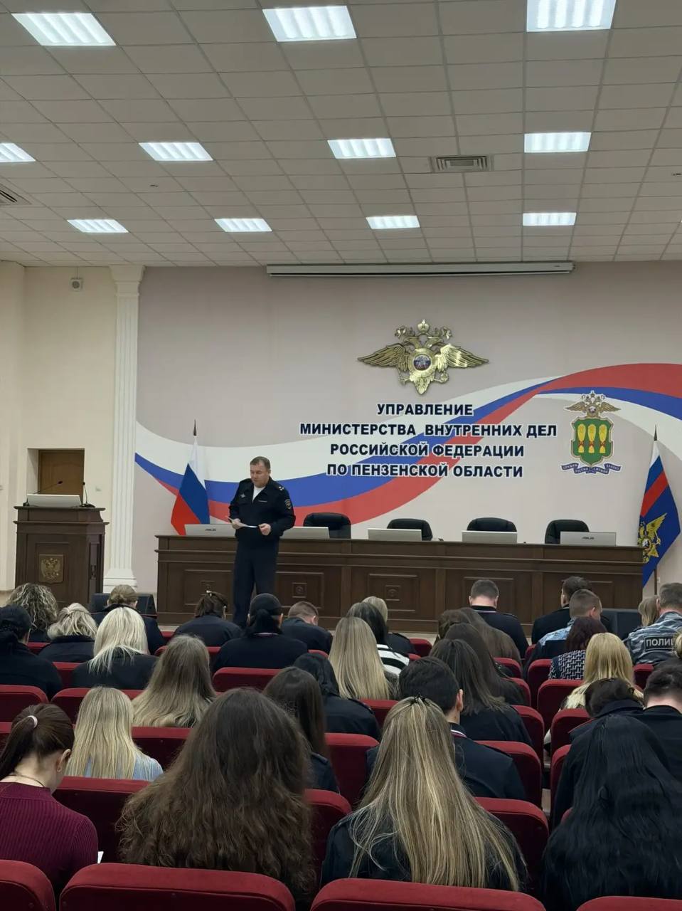В Пензенской области одной из площадок проведения стал конференцзал Управления МВД России по Пензенской области. Здесь собрались сотрудники различных подразделений ведомства, чтобы принять участие в важном событии.