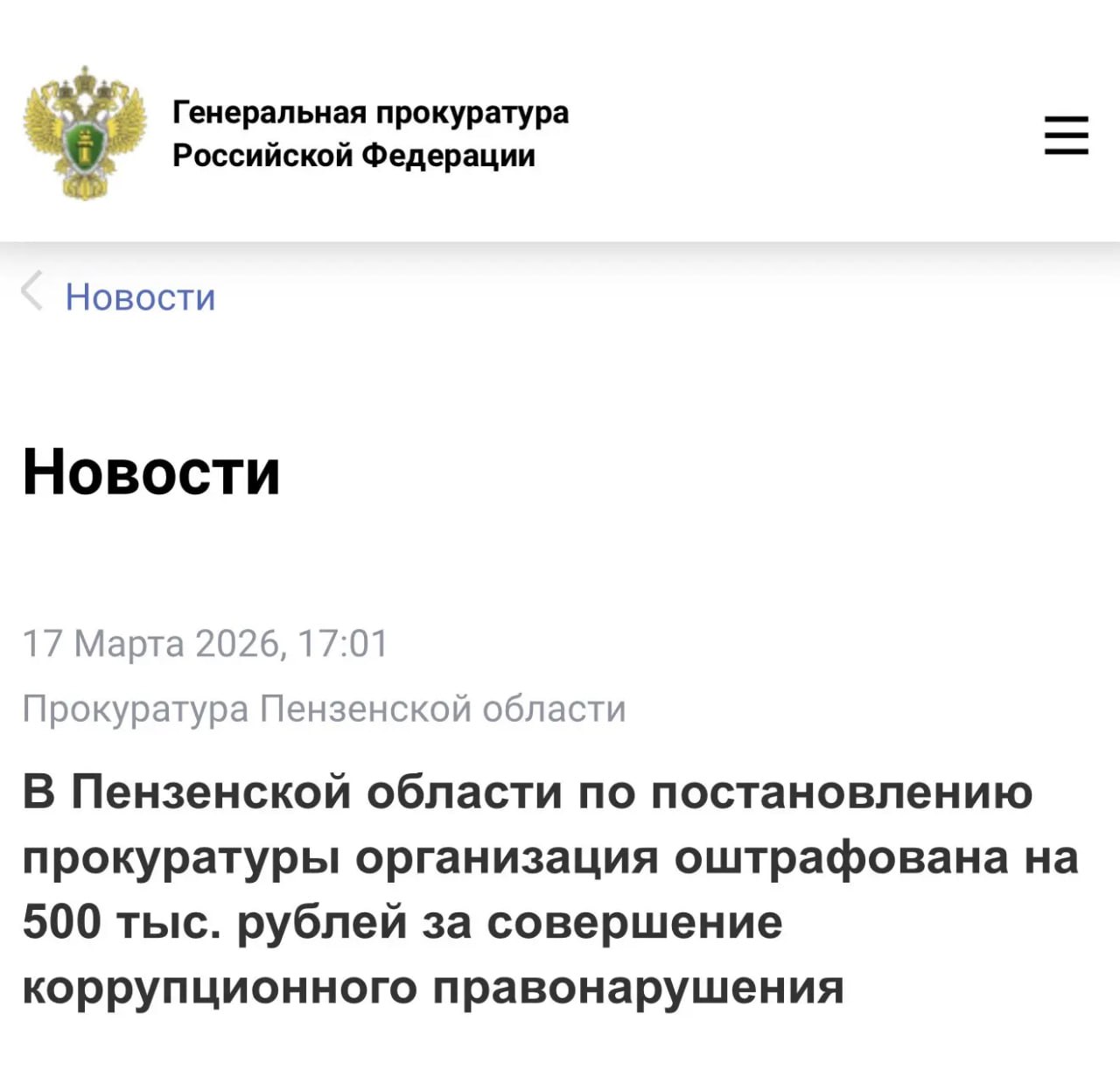 500 тысяч рублей штрафа, назначенных компании по постановлению прокуратуры за совершение коррупционного правонарушения, уже оплачены.