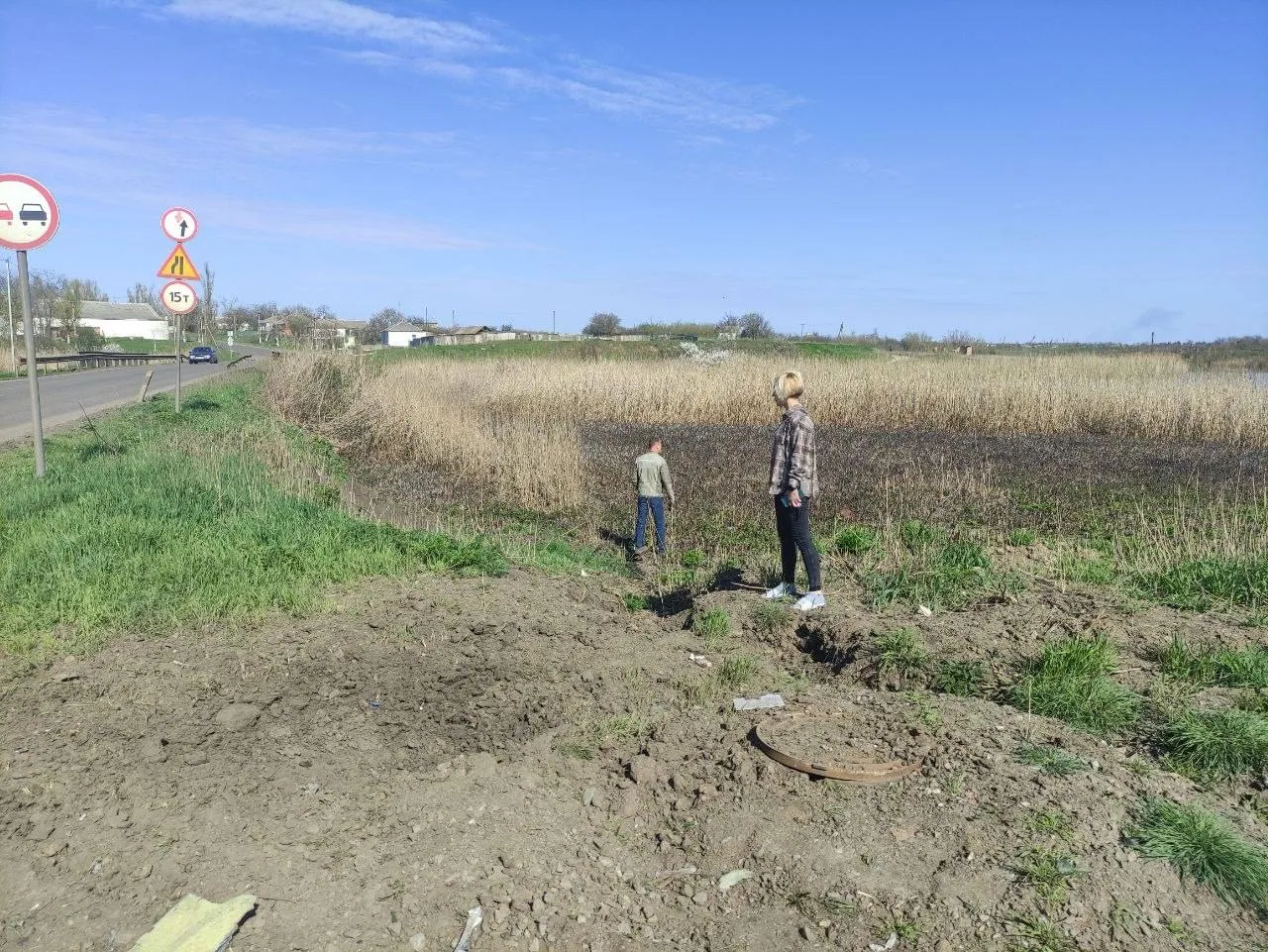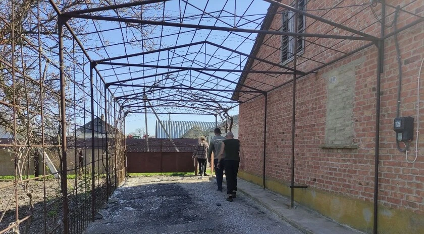 В результате атаки загорелся камыш, рядом находилась часть водовода, которая пострадала. Во дворах рядом с пунктом выбиты окна.