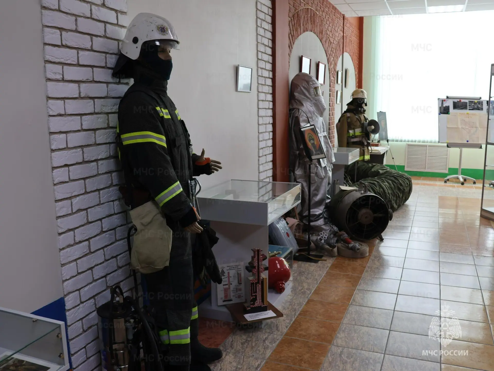 Во время экскурсии посетители смогли ознакомиться с внушительной коллекцией моделей пожарных машин разных эпох, увидеть образцы спасательной техники и пожарно-спасательного вооружения.