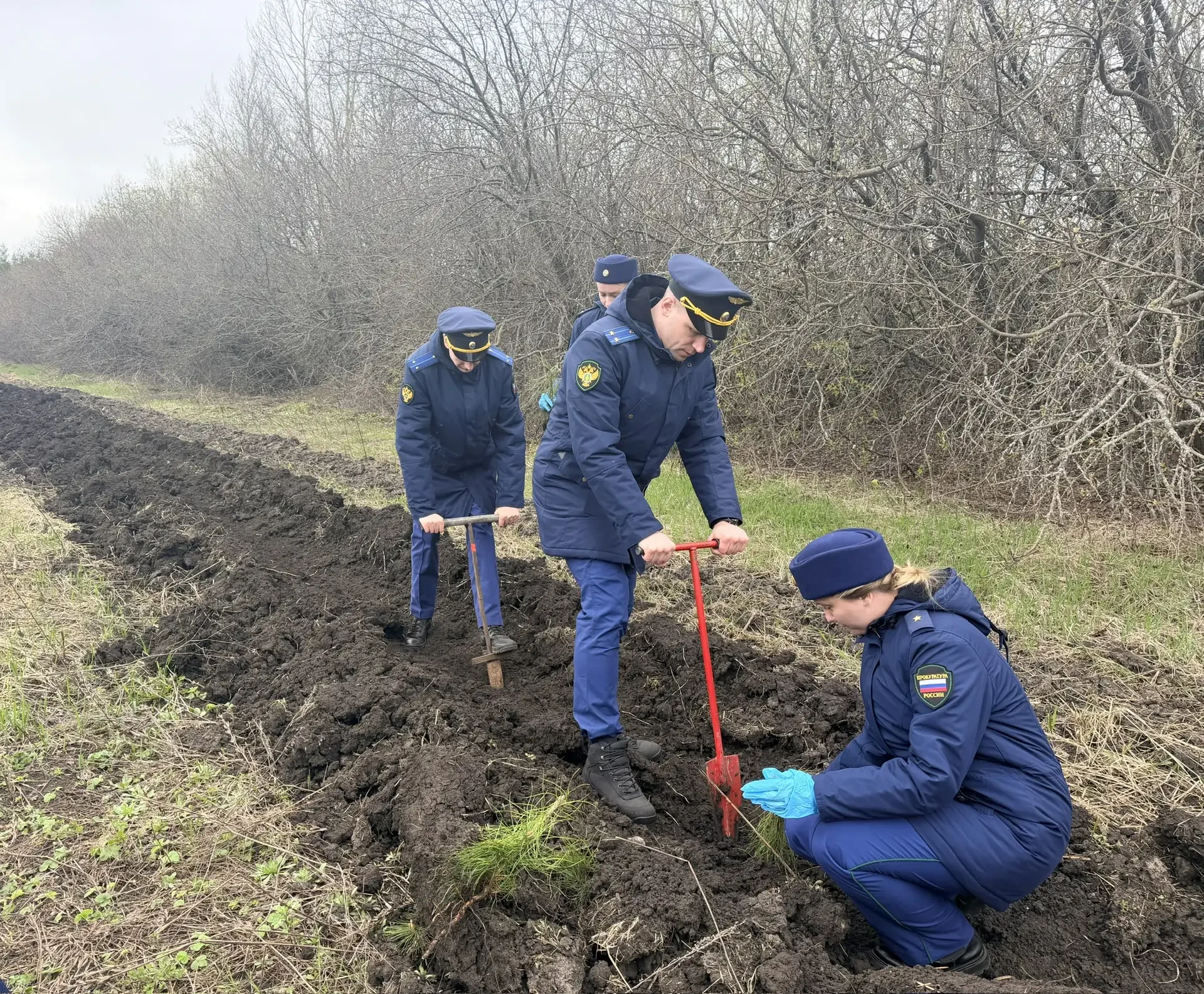 Под руководством заместителя прокурора области Олега Светового работники надзорного ведомства, в том числе молодые специалисты, высадили на территории Ленинского лесничества саженцы сосны.