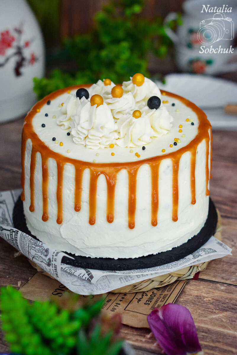 После стабилизации украсьте торт по своему вкусу, нанести карамель на охладённый торт для ровного нанесения. Приятного аппетита!