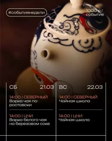Пока команда Чайной Истории готовит для вас ролик с уникальным чаем, предлагается ознакомиться с интересными мероприятиями, которые ждут вас в эти выходные.