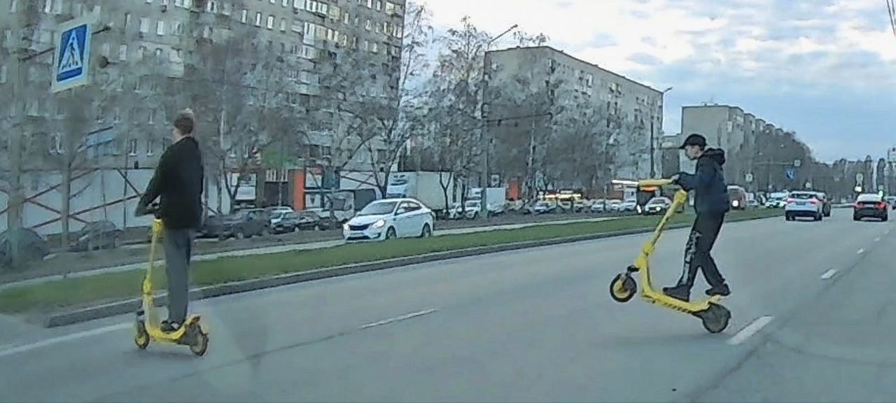 «На видео несовершеннолетние ребята, нарушающие абсолютно все правила для самокатов. Не спешились на пешеходном переходе, езда на одном колесе... По опыту прошлого года - движение несовершеннолетних проходит только в таком формате», - сообщил автор кадров. Они были сделаны сегодня.