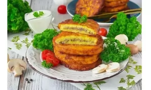 Основной набор ингредиентов прост: картофель, лук, грибы, яйца, мука, соль и перец. Важно: натереть картофель крупной тёркой и отжать лишнюю влагу, чтобы масса держала форму и не расплывалась. Грибы жарятся отдельно до золотистой корочки и испарения влаги, затем соединяются с картофельной массой.