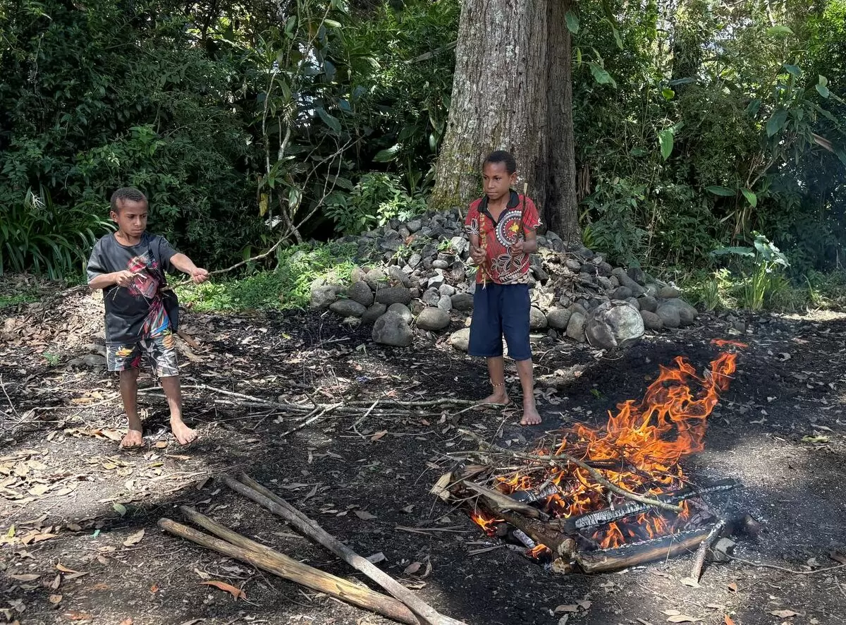 Этот обычай зародился в далёком прошлом и сохранился до наших дней. Мерило богатства местного вождя можно увидеть по длинной ленте на его шее, украшенной деревянными палочками: каждая такая палочка означает четыре свиньи, которых он смог запечь за свою жизнь. Это не просто охота, а отражение его материального положения.