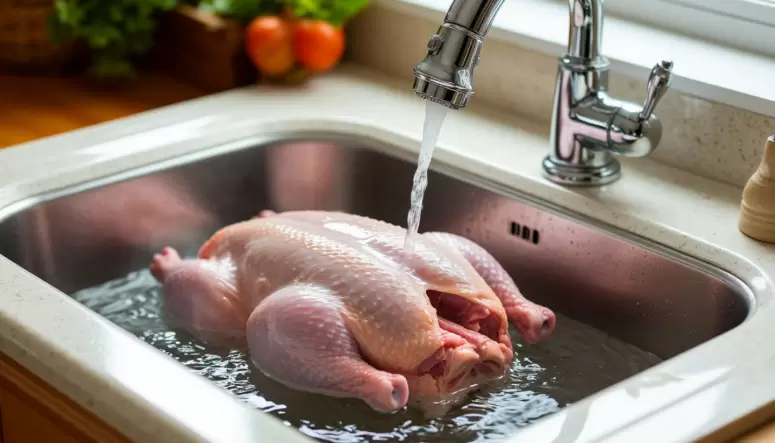 На поверхности сырого мяса, включая курицу, обитают бактерии, такие как сальмонелла и кампилобактер. Когда под краном струя воды ударяет по тушке, бактериальные капли распыляются по кухне, оседая на ножах, досках и даже на продуктах. Исследования показывают, что промывание не уничтожает бактерии, а создает аэрозольное облако из потенциально опасных микроорганизмов. Поэтому у специалистов есть однозначный ответ: мыть курицу нельзя.