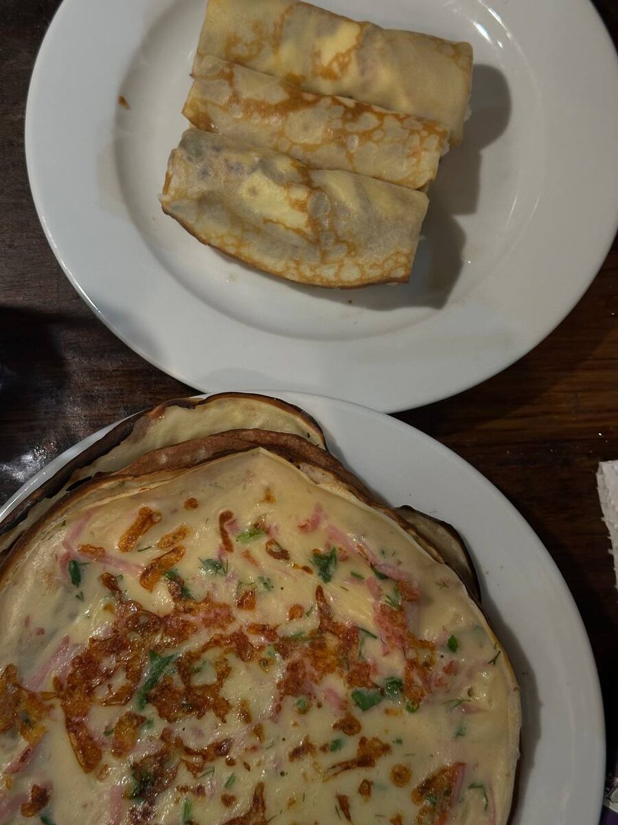 - Блинчики с ветчиной: идеальный выбор для любителей сытной пищи. Просто добавьте к блинчикам тонкие ломтики ветчины, и блюдо приобретет неповторимый вкус.